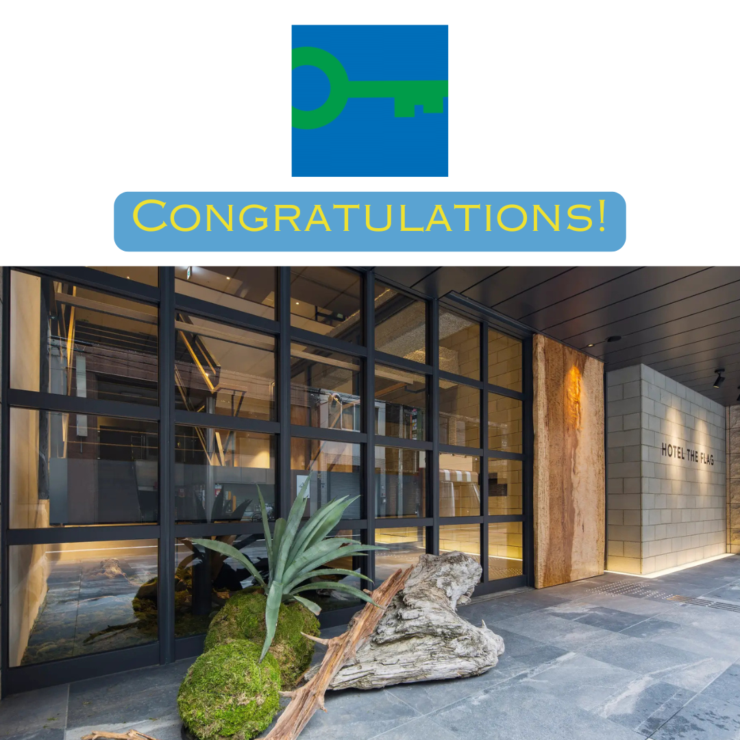 2026年3月8日付で、大阪・心斎橋のライフスタイルホテル「Hotel THE FLAG Shinsaibashi」は、国際的な環境認証「Green Key(グリーンキー)」の更新を完了いたしました。 同ホテルは取得以来、持続可能なホテル運営を継続されており、今回の更新はその真摯な取り組みが引き続き厳格な国際基準を満たしていることを証明するものです。 グリーンキーの継続更新、誠におめでとうございます!